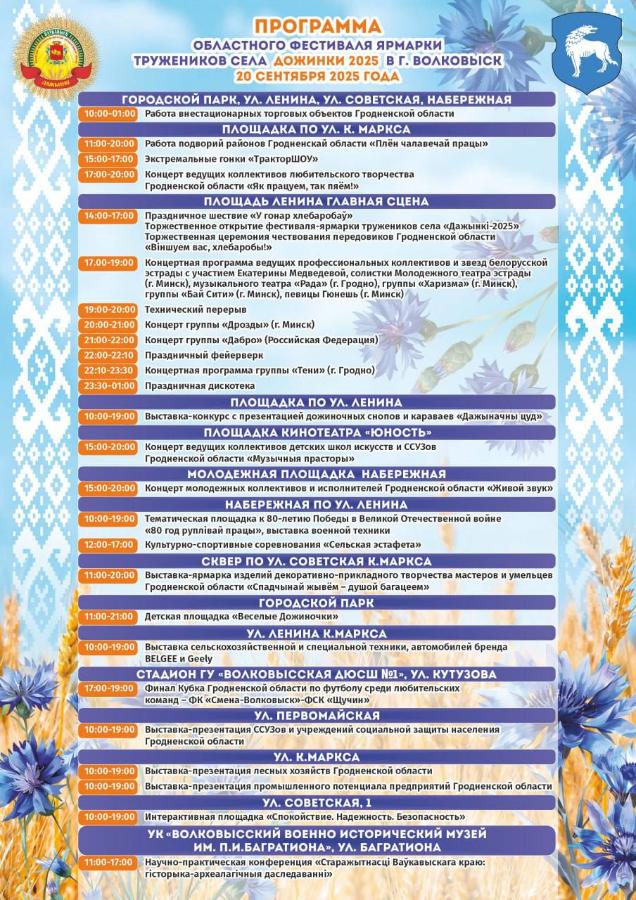 Программа областного фестиваля-ярмарки тружеников села «Дажынкі - 2025»