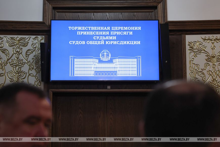 Судья суда общей юрисдикции вправе осуществлять правосудие только после принесения присяги и приводится к ней в течение одного месяца со дня назначения на должность. Присяга приносится судьей суда общей юрисдикции в торжественной обстановке перед Государственным флагом Республики Беларусь.